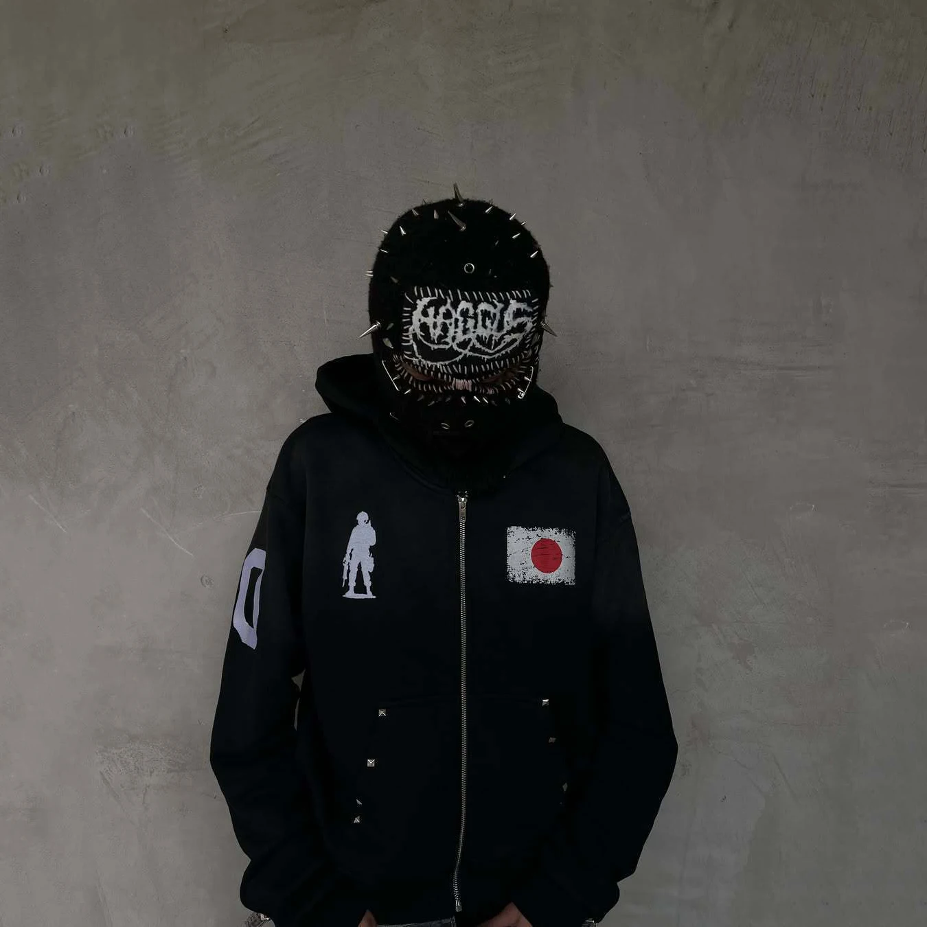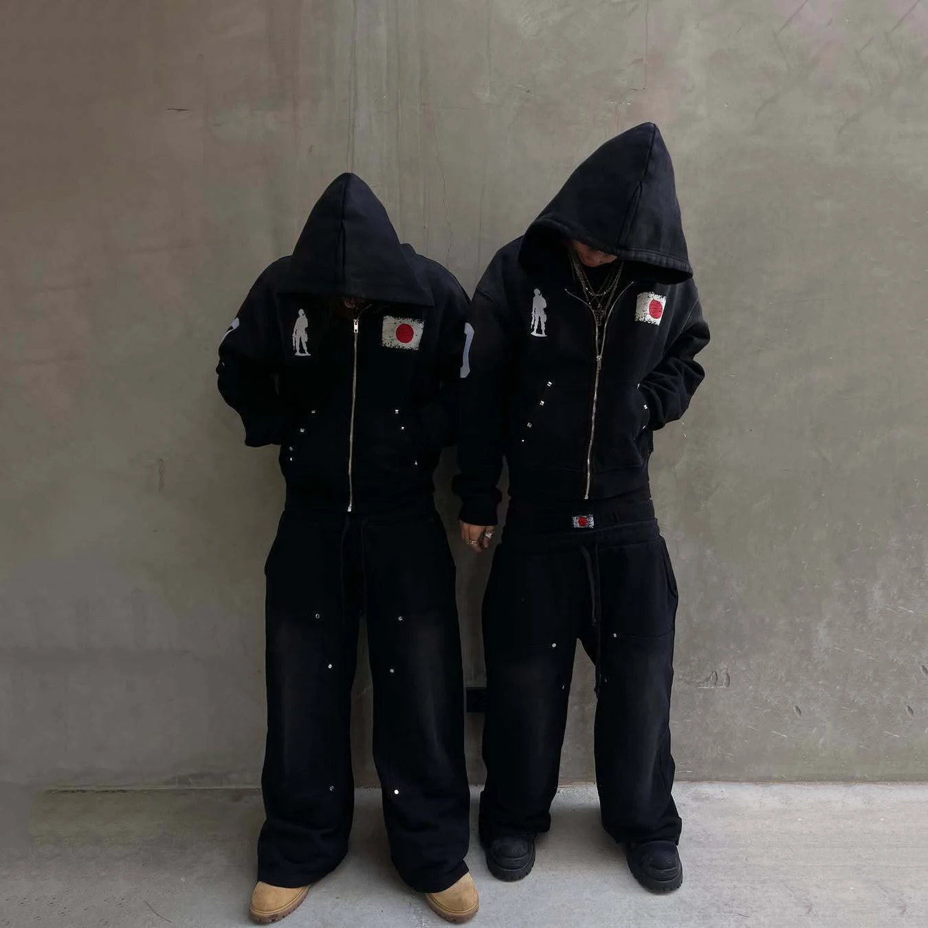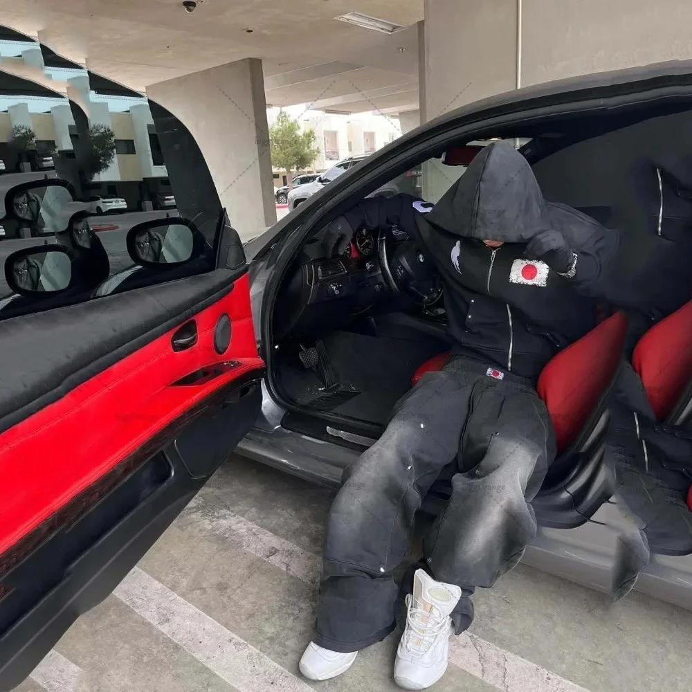 Trendy retro washed embroidered long sleeved shirt, loose and versatile, casual and high-end hooded sweatshirt for men