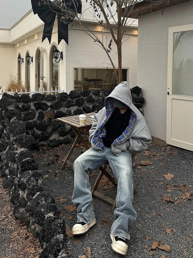 Winter Casual Plaid Print Hoodie Women's Warm Zip-Up Double-Sided Wear Sweatshirt Female Fashion Trendy Loose Hooded 2025 New